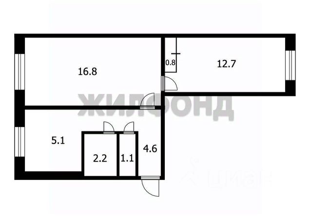 - Общая площадь 43.3 м2