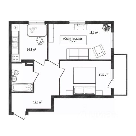 - Общая площадь 65 м2