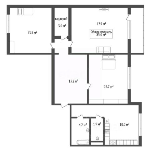 - Общая площадь: 85 м2