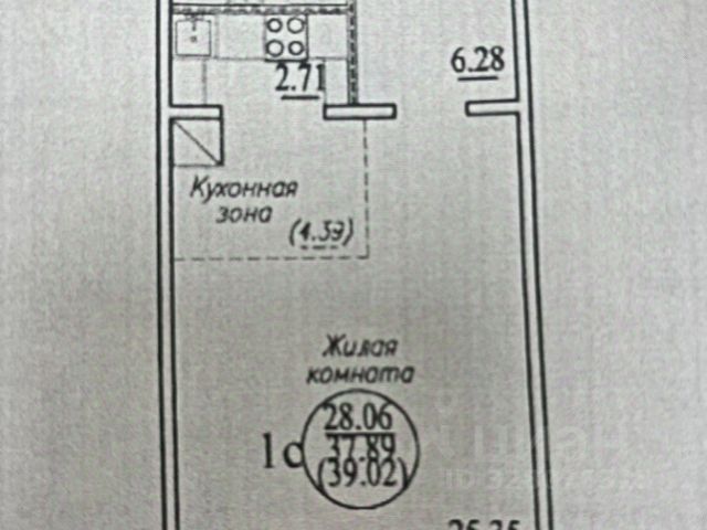 - Общая площадь 39 м2