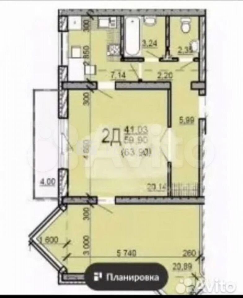 - Общая площадь: 63.9 м2