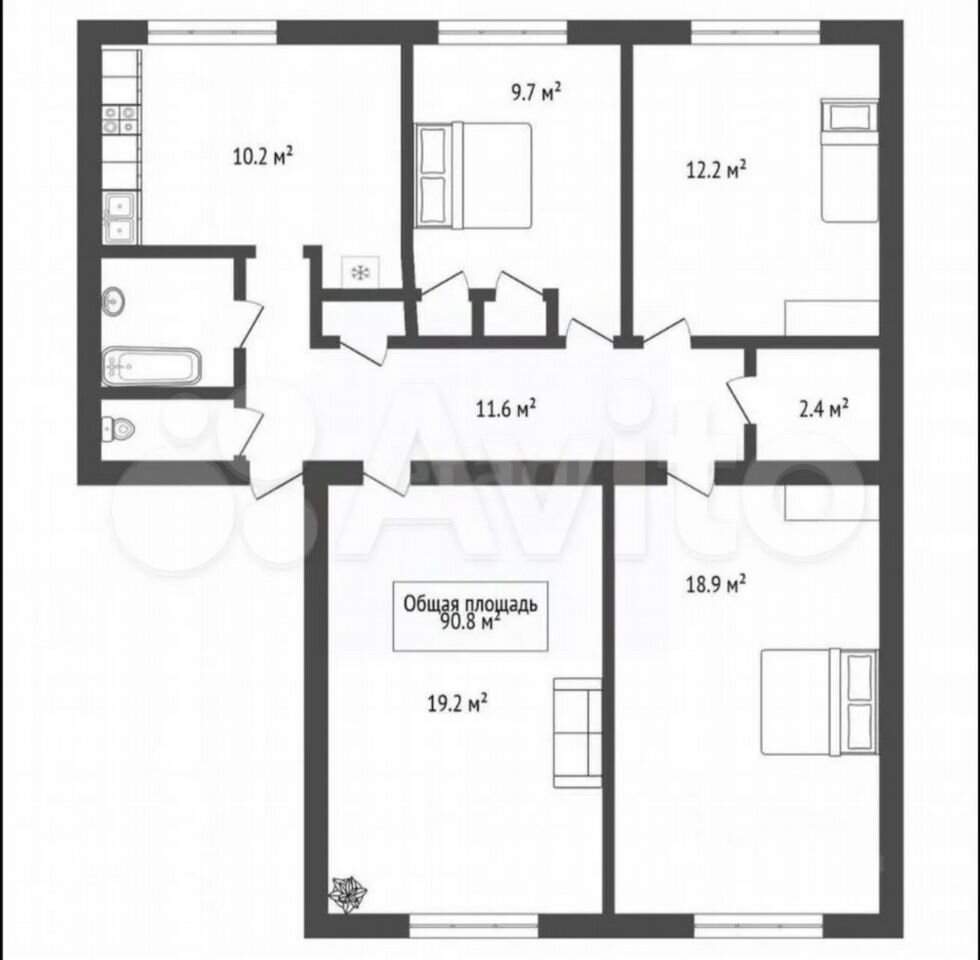 - Общая площадь 90.8 м2