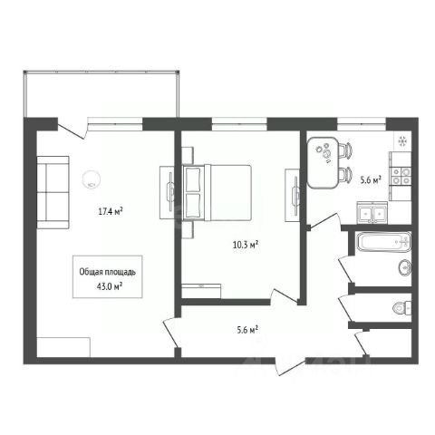- Общая площадь: 43 м2
