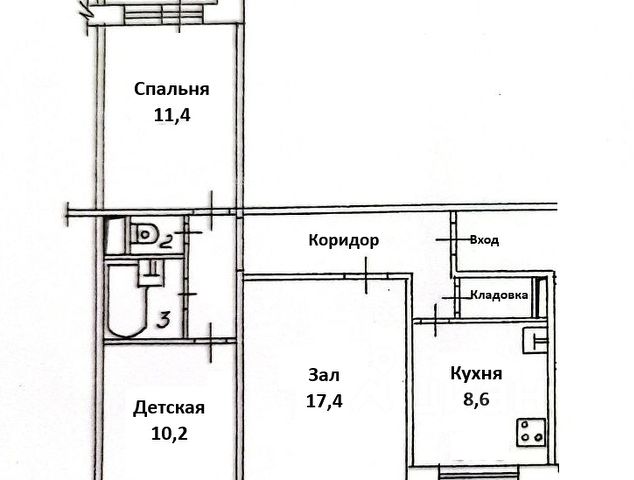 - Общая площадь: 62.8 м2