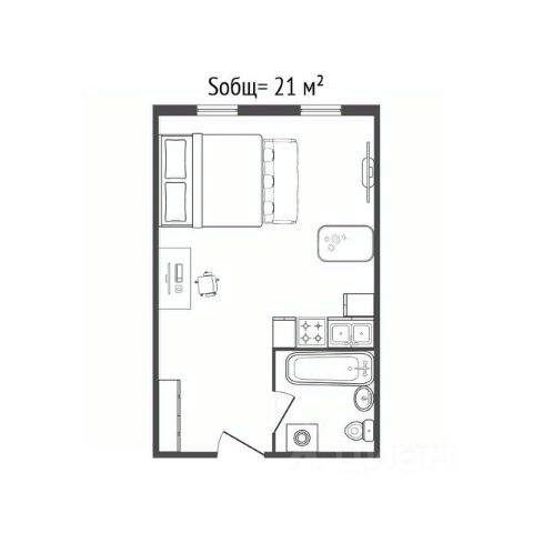 - Общая площадь 21 м2
