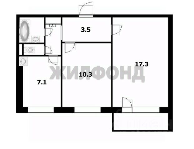 - Общая площадь: 43.9 м2