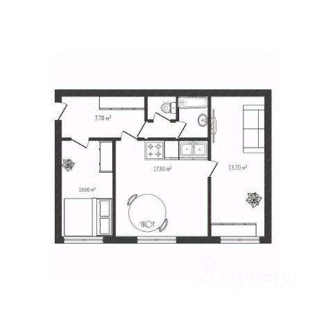 - Общая площадь 54 м2