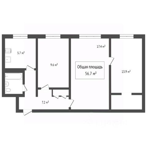 - Общая площадь 51.1 м2