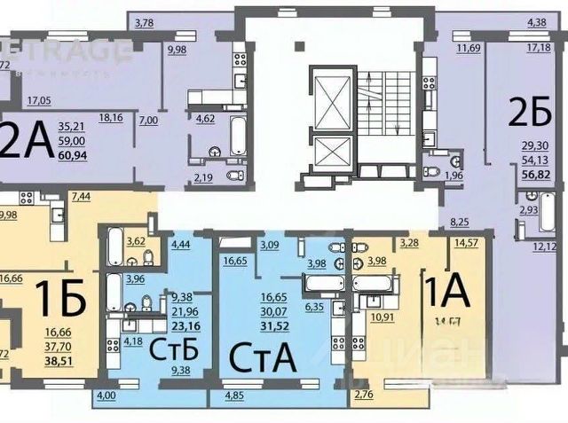 - Общая площадь: 54.8 м2