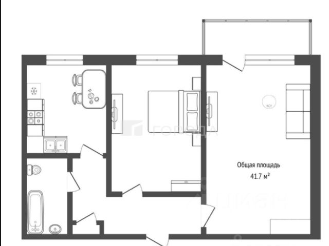 - Общая площадь: 42 м2