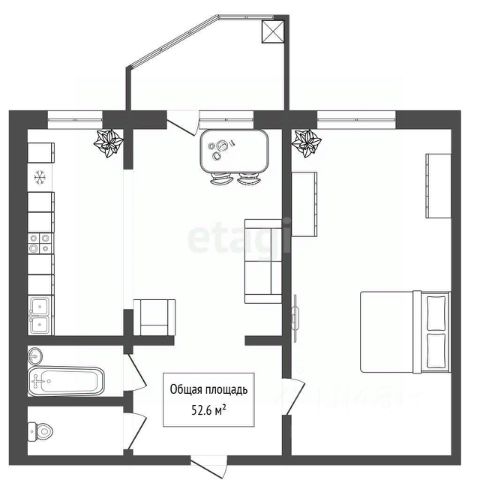 - Общая площадь: 52.6 м2
