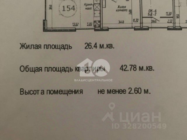 - Общая площадь: 42.8 м2
