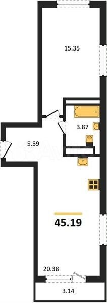 - Общая площадь: 45.2 м2