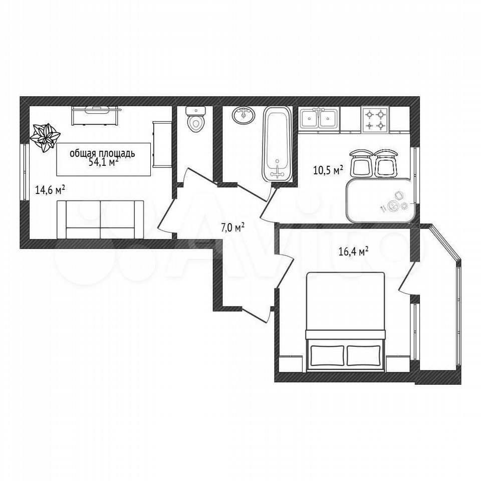 - Общая площадь: 54.1 м2