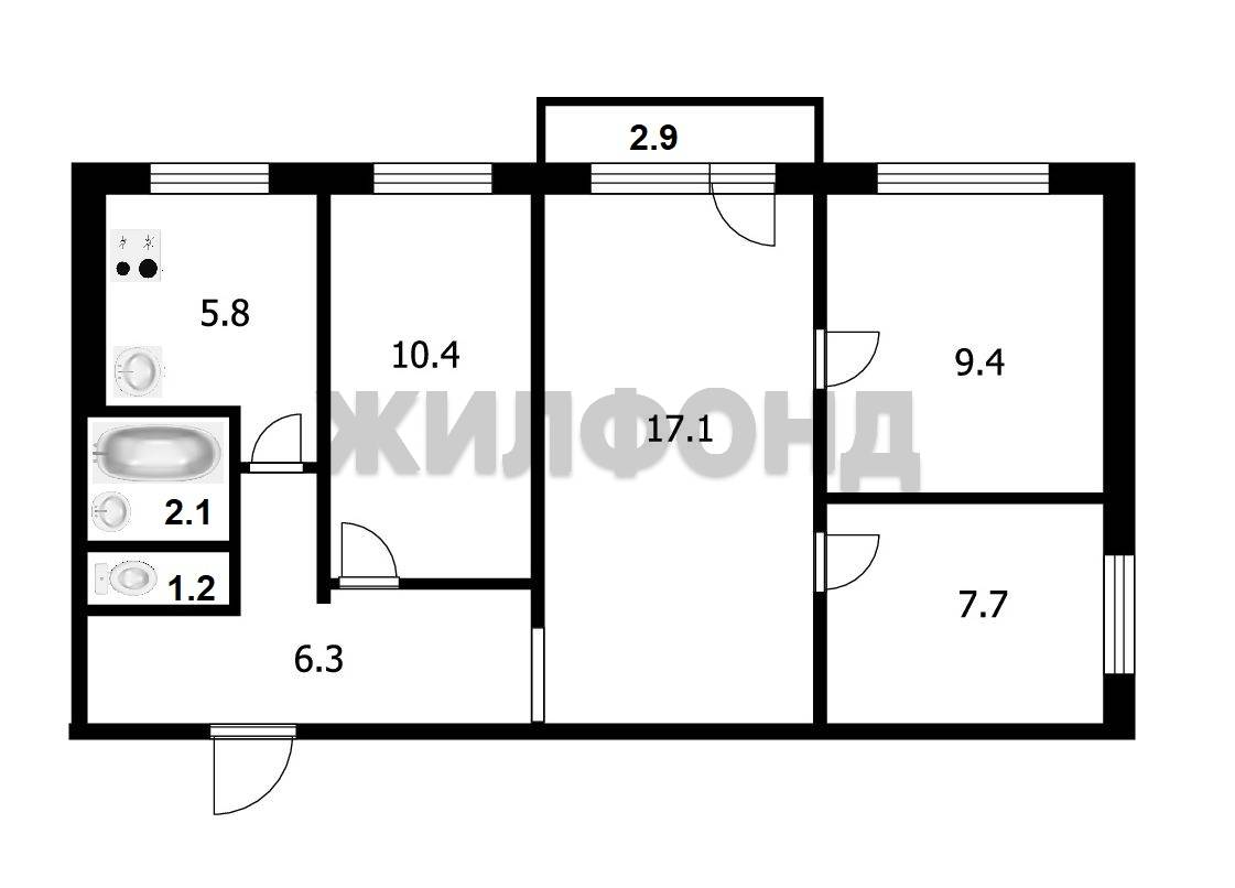 - Общая площадь: 59.9 м2