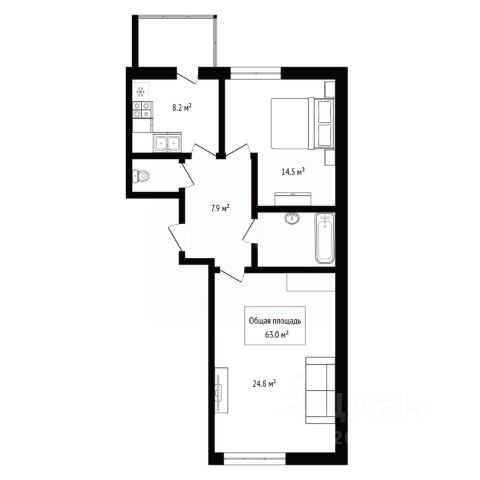- Общая площадь 63 м2