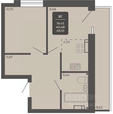 - Общая площадь 48.7 м2