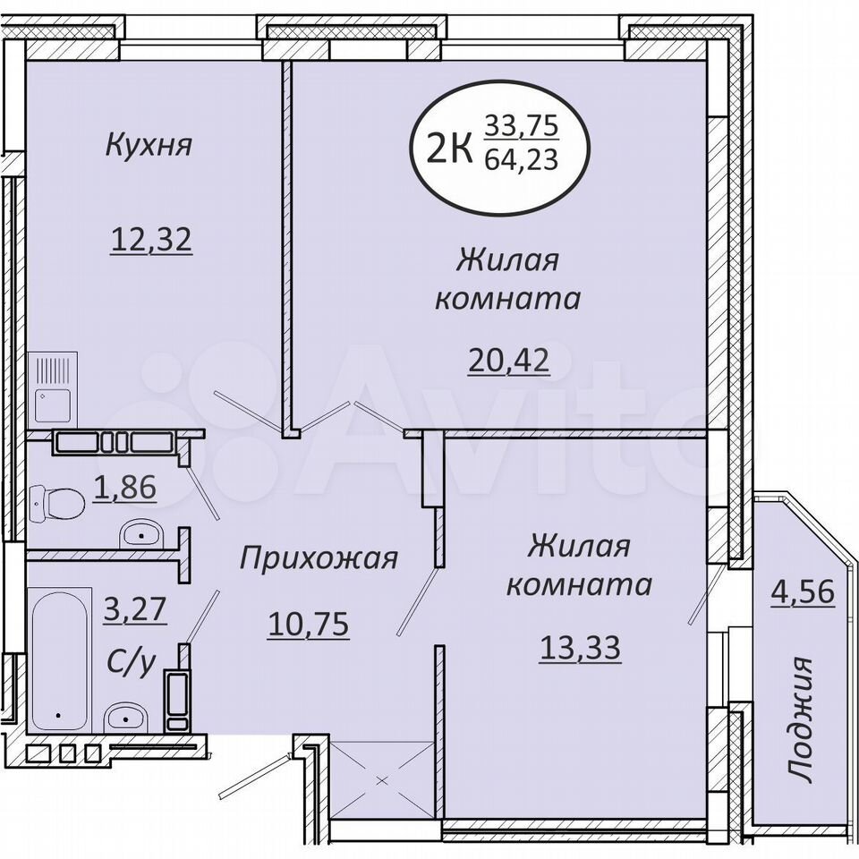 - Общая площадь: 64.2 м2
