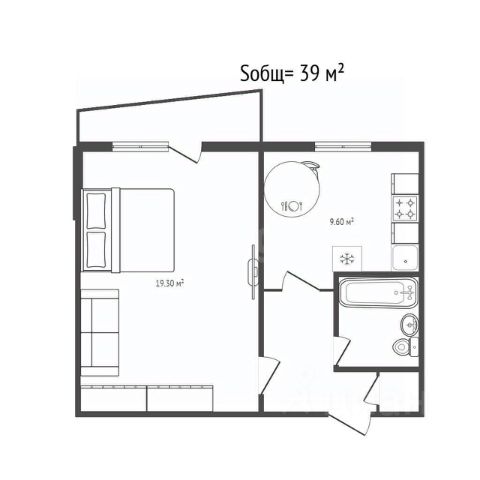 - Общая площадь 37.4 м2