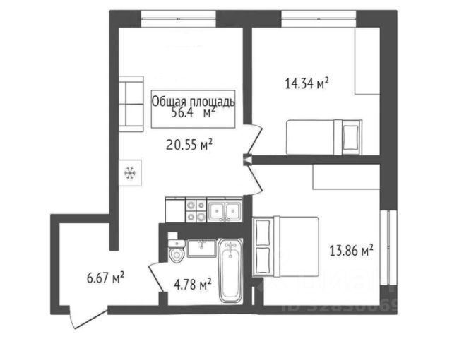 - Общая площадь: 56.4 м2