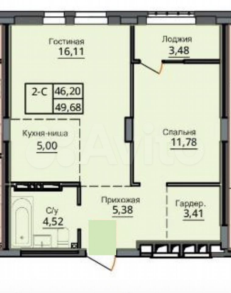 - Общая площадь 46.2 м2