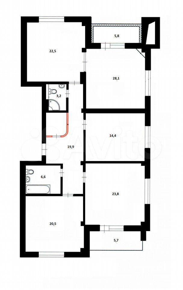 - Общая площадь: 140.4 м2
