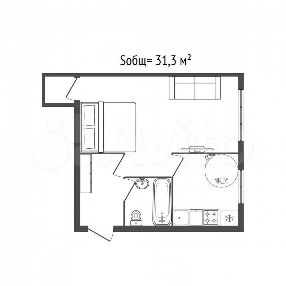 - Общая площадь: 31.3 м2