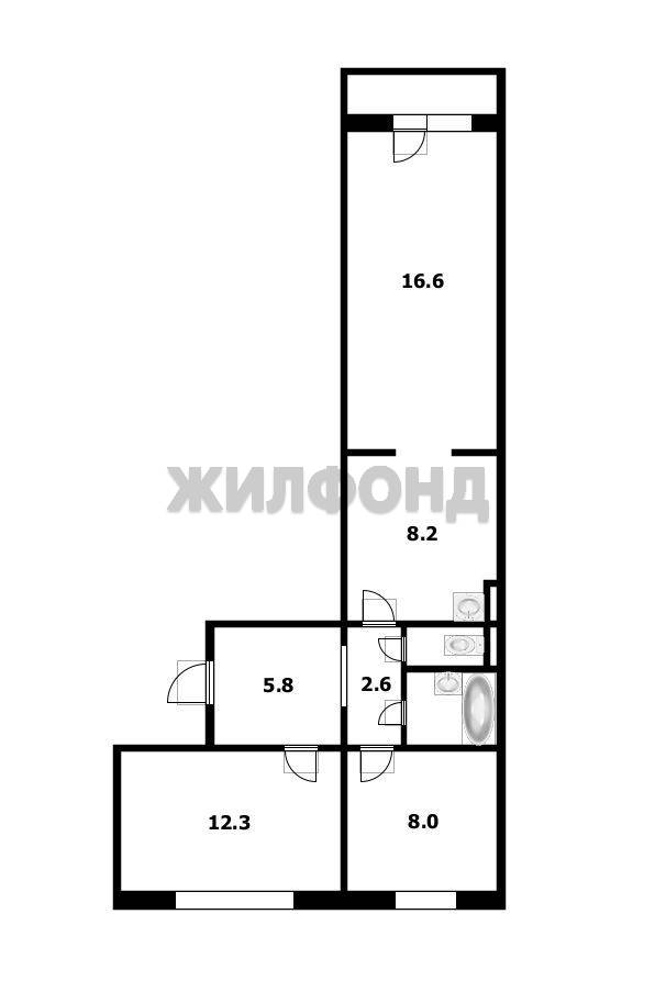 - Общая площадь: 57.9 м2