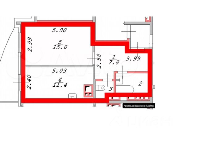 - Общая площадь: 39.6 м2