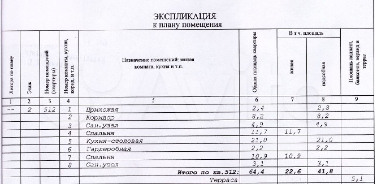 - Общая площадь: 64.4 м2