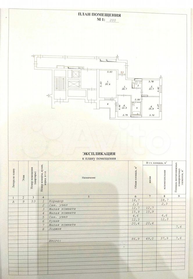 - Общая площадь: 86.9 м2