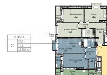 - Общая площадь 47.7 м2