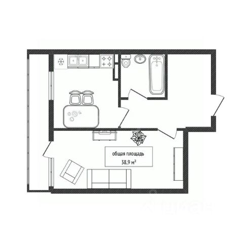 - Общая площадь 38.9 м2