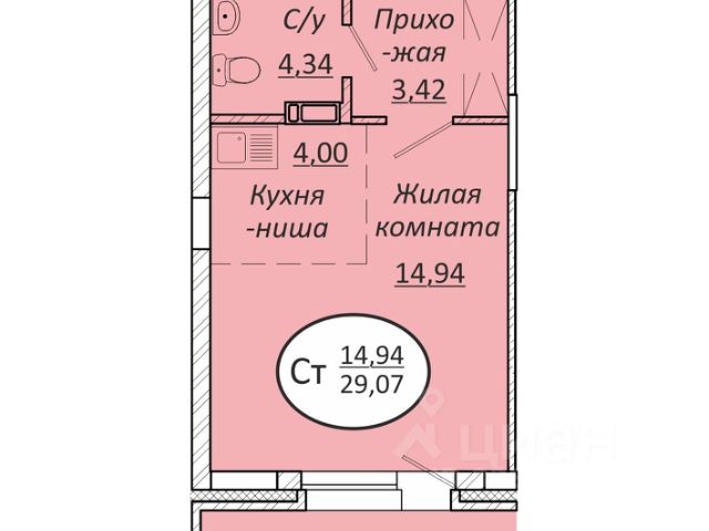 - Общая площадь: 29 м2