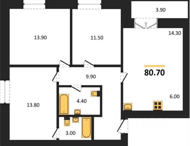 - Общая площадь 80 м2
