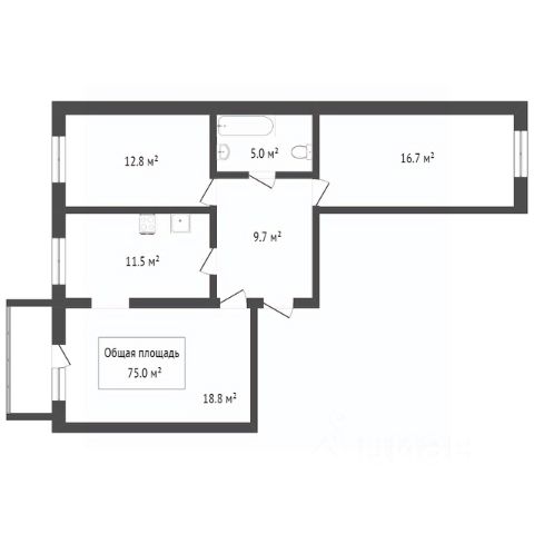 - Общая площадь 74.6 м2