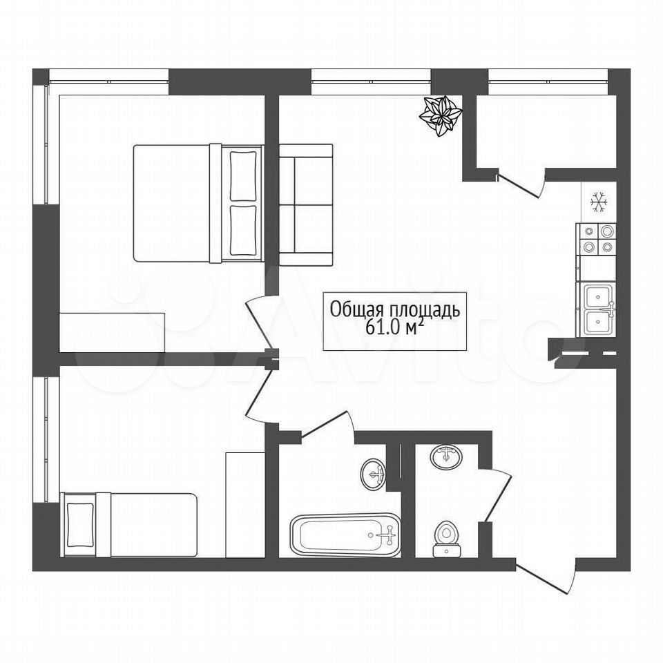 - Общая площадь: 61 м2