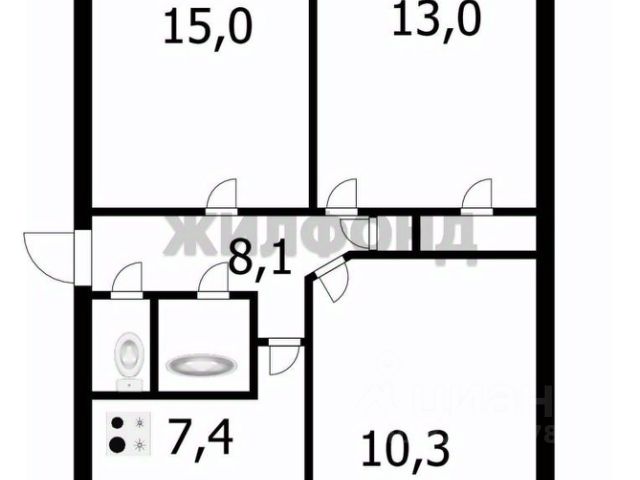 - Общая площадь 58.2 м2