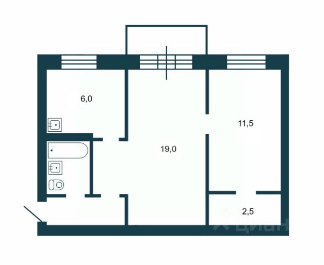 - Общая площадь 44.9 м2