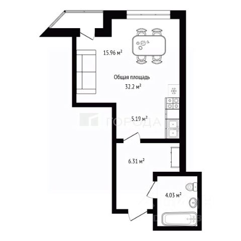- Общая площадь: 32.2 м2