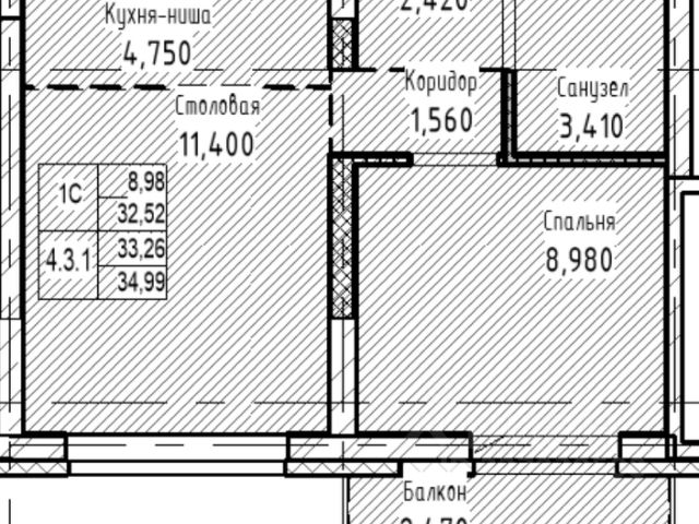 - Общая площадь: 32.5 м2