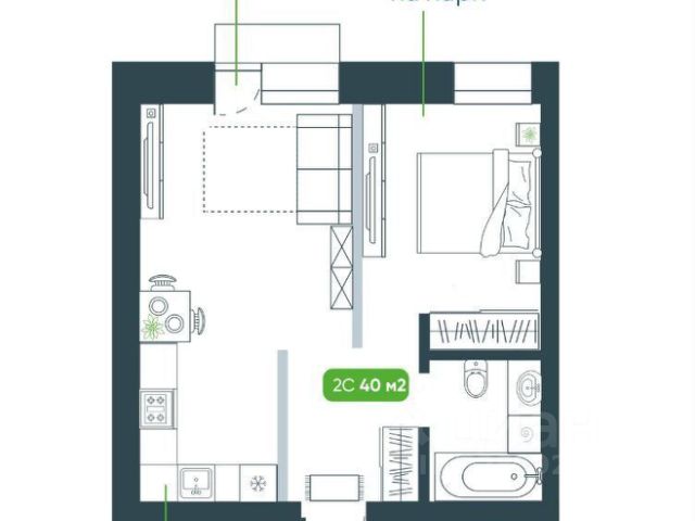 - Общая площадь: 38 м2