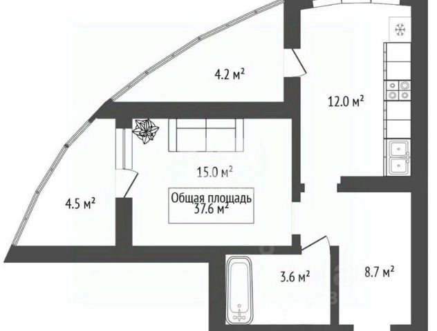 - Общая площадь: 37.6 м2