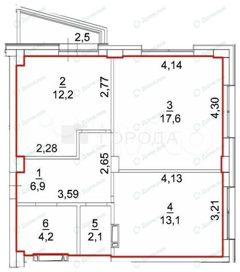 - Общая площадь: 58.4 м2