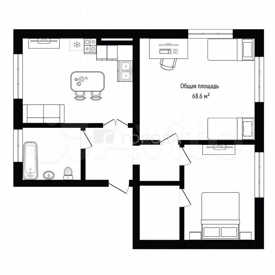- Общая площадь 68.6 м2