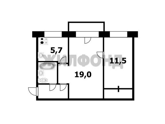 - Площадь кухни: 5.7 м2