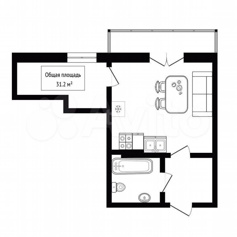 - Общая площадь 31.2 м2