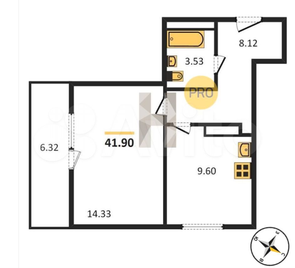 - Общая площадь: 41.9 м2
