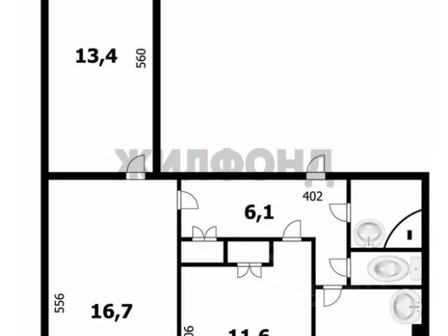 - Общая площадь: 62.2 м2