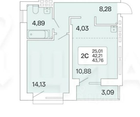 - Общая площадь: 42.4 м2